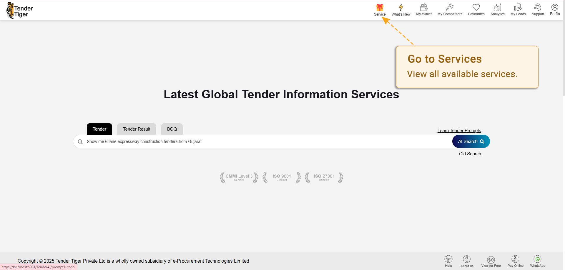 Go to Services > Tenders