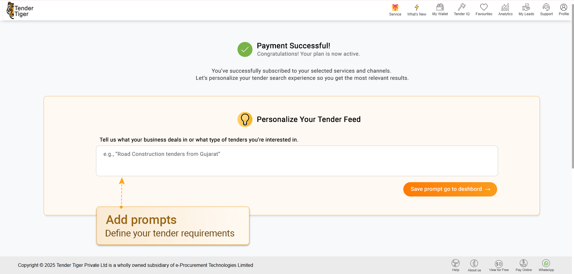 Define your tender need (add 1 or more prompts)